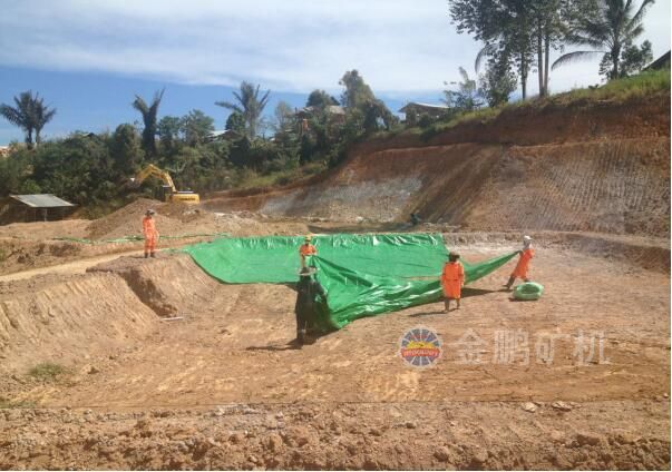 2、喷淋系统:在铺设好的矿堆上,设置喷淋系统。氰化溶液与矿堆反应后,从矿堆底部渗出含金溶液(贵液),流入贵液池,经贵液泵打入吸附柱,活性炭吸附后的溶液为贫液,贫液返回喷淋系统再利用。